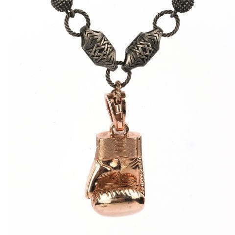 Boks eldiveni figürlü özel tasarım gümüş kolye.ÜRÜN DETAYLARI