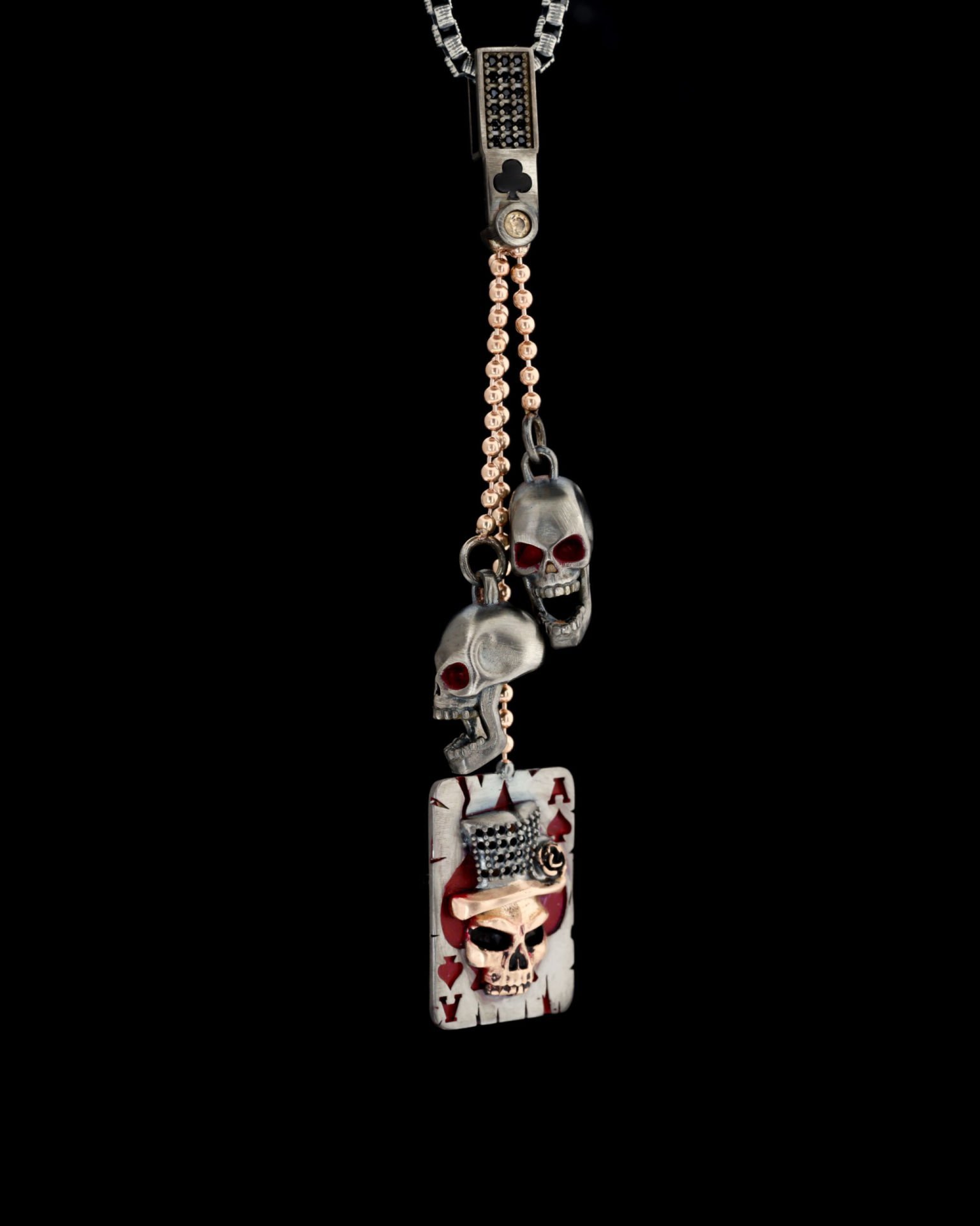 Kumarbaz Koleksiyonu İskambil Kağıdı Ve Kurukafa Figürlü Gümüş Kolye